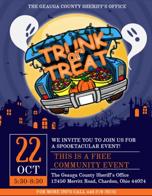 The Geauga County Sheriff’s Office is preparing for its annual Trunk or Treat event scheduled for October 22. The department is currently accepting candy donations to ensure a successful community celebration.