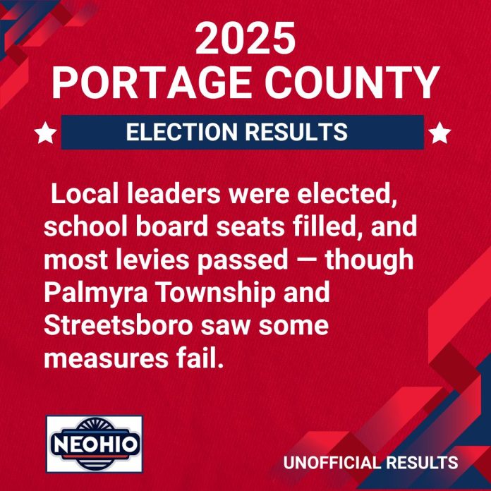 Portage County voters made their voices heard in the November 4, 2025 General Election, selecting new local leaders and weighing in on a variety of tax levies across the county. According to the Portage County Board of Elections, voter turnout was just over 26,000 ballots — roughly one quarter of registered voters.