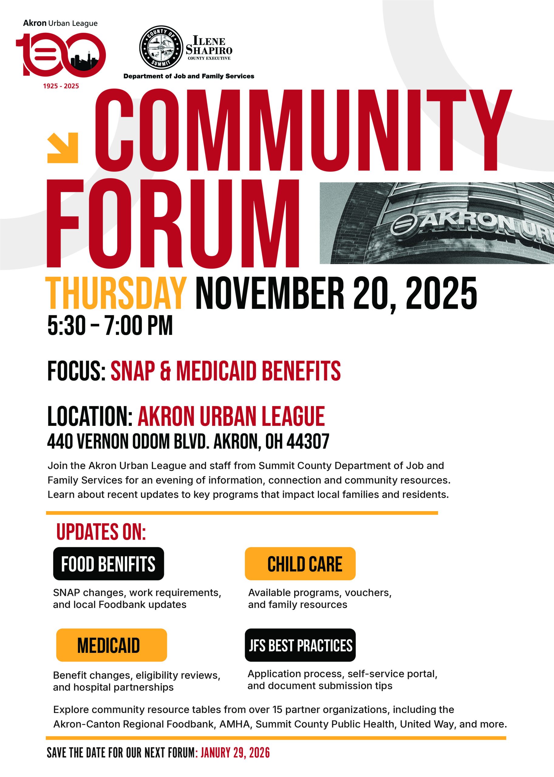 Summit County Executive Ilene Shapiro’s Department of Job and Family Services and the Akron Urban League are hosting a community forum to address changes coming to SNAP and Medicaid programs.